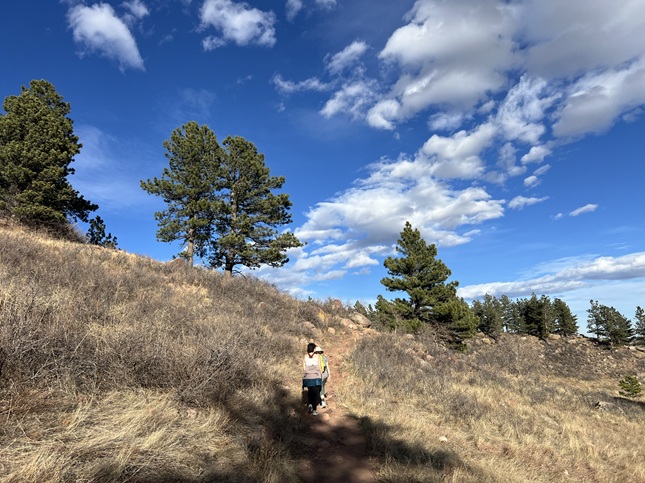 13) Chautauqua, Bluebell-Baird, Mesa and Enchanted Mesa Trails, Chautauqua trailhead, City of Boulder Open Space and Mountain Parks, Boulder, CO, April 20, 2025 - We did another spring hike with our friend Desiree but this time we chose to meet at Chautauqua instead of our usual hiking spot at South Mesa Trailhead. We met up in the late afternoon on Easter Sunday and hiked a short loop starting on the Chautauqua trail, then going along the front of the Flatirons along the Bluebell-Baird trail. We then continued south on the Mesa trail before turning back on the Enchanted Mesa trail to return to the trailhead. A 2.9 mile loop with 650 feet of elevation gain.