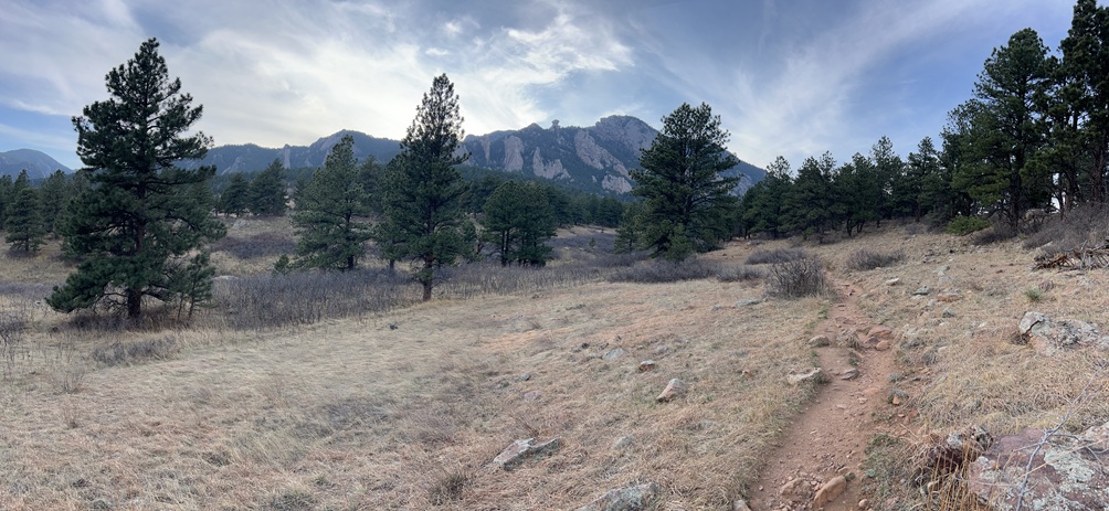 15) Homestead, Mesa, Upper Big Bluestem and Big Bluestem West Trails, South Mesa Trailhead, Boulder Open Space & Mountain Parks, Boulder, CO, Feburary 22, 2026 - On the Eve of Jonna's birthday we joined our friend Desiree for our regularly scheduled Sunday evening hike. As usual, we met at the South Mesa Trailhead and we did what is becoming our new normal for a hike. Going up Homestead Trail to where it joines Mesa Trail then taking the Mesa trail north to the junction with Upper Big Bluestem Trail. We then took that trail east to where it meets the Big Bluestem West Trail which goes south to re-connect with Mesa trail. We got back to the trailhead after the sun had set behind the mountains and the temperature started to drop which meant we were chilled when we got back to the cars. A 4.8 mile loop with 800 feet of elevation gain.