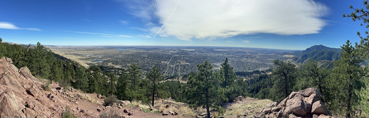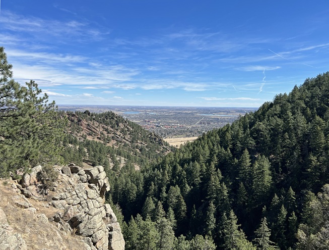23) Anemone Point and Mt. Sanitas, Boulder City Open Space & Mountain Parks, Boulder, CO, March 25, 2026 - This was two hikes combined into a single morning. It started with Jonna and Alan joining our friend Julia at the Centennial parking lot to hike part of the Anemone Loop trail. We went up the Anemone Trail to the loop, then took the shorter route up to first Realization Point and then on up to Anemone Point. Rather than completing the loop once we got to the top we turned around and headed back down the way we'd gone up. We started hiking at 7:30am so we had both cool morning weather with temps in the mid-60s and low morning sun. When we got back down to the parking lot Julia had to get to work and Jonna had errands to run so Alan head out on his own to hike a new-to-him loop of trails. First was the Sunshine Canyon trail which just follows Sunshine Canyon road for a mile or so going west up the canyon. That trail ended at the Lion's Lair trailhead which starts the climb up the western side of Mt. Sanitas. This trail is just a long series of switchbacks which ended up spreading the roughly 1,000 feet of gain over about 3.5 miles of trail. The Lion's Lair trail eventually connects with the Mt. Sanitas trail just below the summit. By the time Alan got to the top of the mountain the temperature was climbing so it felt like a full blown summer hike with bright sunshine and warm air. Then it was down the Mt. Sanitas trail to get back to the Centennial parking lot where Jonna returned to pick up Alan. A nice, long hike and chance for Alan to hike two new trails! A 8.3 mile loop with 2,000 feet of elevation gain.