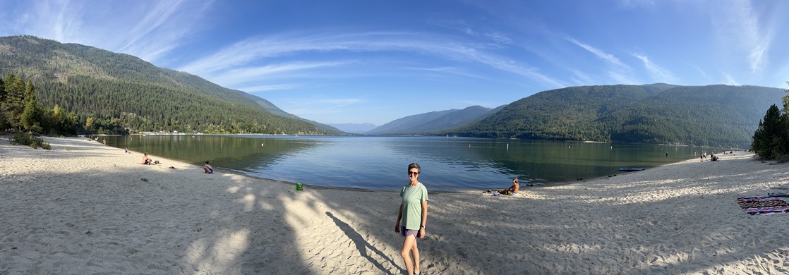 1) Kokanee Creek Provincial Park, Kootenay Lake (West Arm), Nelson, BC, September 19, 2025 - After our long days driving across Wyoming, Montana and Idaho we were happy to finally cross into Canada where we would slow our pace and start traveling rather than just clicking of miles. Our first stop was in Nelson, BC where we walked around and had lunch. Then we drove just a little ways east out of town where we set up camp in Kokanee Creek Provincial Park. Our initial impressions of the area were that it was gorgeous! Our campground was located on the west arm of Kootenay Lake and surrounded by the Selkirk Mountains. The campground had a nice sandy beach right on the lake and a network of trails hikable from our campsite.