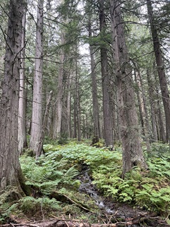 9) Asulkan Valley Trail, Glacier National Park, Revelstoke, BC, September 21, 2025 - The area was so stunning we did a short hike making a loop connecting two different trailheads. This area is so wet with the glaciers, the resulting creeks and from rain being dropped when storms hit the western face of the Rockies that the landscape is a mixture of alpine and rainforest. The whole area is lush and covered with vibrant color.