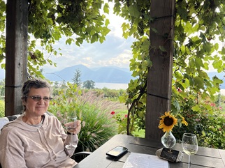 21) Deep Roots Winery, Penticton, BC, September 27, 2025 - The panoramaic view with the sun starting to set in the west was definitely worth the cost of a flight of wine tasters.