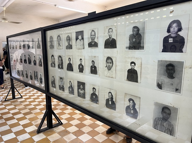 202) Tuol Sleng Genocide Museum, Phnom Penh, Cambodia, March 3, 2025 - Photos of many of the victims have been found but the paperwork that identifies each photo was destroyed so there are walls inside covered with the nameless photos of victims. The look on the faces in the mug shots is chilling.