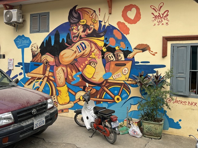 221) Tuk-Tuk Tour, Pub Street Murals, Battambang, Cambodia, March 4, 2025 - Compared to many large cities Battambang doesn't have as big a problem with graffiti so these murals were generally free from tags which was nice to see. I doubt public art in many western cities could survive for three years without being tagged beyond recognition.