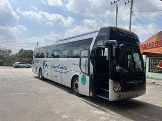 186) Ben Thanh Ward, Sài Gòn, Vietnam, March 1, 2025 - After lunch we hustled back to the hotel where we retrieved our luggage and had a final meet-up with our now ex-guide Minh as he booked our cab to the new hotel where our Cambodia tour would start. It was a quick 15 minute cab ride - out first in one of the Vietnamese Vinfast electric cars - and then a quick check-in for our room. We rested for about 30 minutes then went out to find a Post Office to mail the last of our postcards from Vietnam. Then it was back again to rest for another short bit and then back down to the lobby for the Welcome meeting for the Cambodia group. We met Borey, the Cambodian guide we’ll spend the next week with, and the 14 people we’ll be sharing this tour with - a mix from Australia, the UK, Canada and the US. Two of the people from our Vietnam tour are also on this one so at least us introverts have a couple of people we can hang out with from the beginning. The meeting lasted an hour while we went over the various details of the visas required to leave Vietnam and to enter Cambodia. We also got the itinerary and the emergency contact info. With all the logistics reviewed most of us then went out for a group dinner which was a very nice way to meet some of the fellow tour participants. Now we are back at the hotel to get some sleep to prep for our very early and very long bus trip (on a public bus) from Ho Chi Minh City to Phnom Penh. In the good news/bad news department the bed is very comfortable but our room overlooks a very busy street (with a lot of curious businesses with names like "Lucky Massage Spa", "Happy Inn Hotel" and "Passion Suites Hotel" so ear plugs will be a requirement to get to sleep early on a Saturday night.