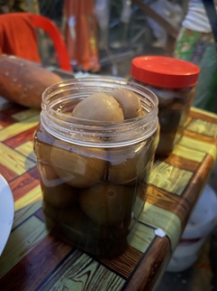 225) Tuk-Tuk Tour, Sangker River Farm, Battambang, Cambodia, March 4, 2025 - Jonna was particularly enamored with the preserved lemons the lady sold. They were combination of tart citrus and acidic pickling juice with a little sweetness added for contrast.