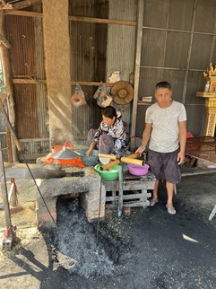 215) ពូមីងធ្វើឆ្នាំង (Pottery House), Khum Srae Thmei, Cambodia, March 4, 2025 - p Her husband and son operate a small sugar palm plantation which they showed how to boil palm juice down to taffy-like sugar.