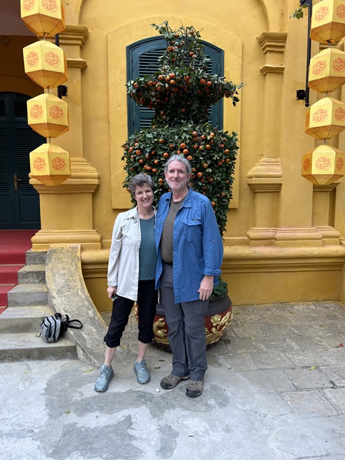 38) Hoàng Thành Thăng Long (Imperial Citadel of Thang Long), Hanoi, Vietnam, February 13, 2025 - After such a busy day our feet were hurting but we managed to stay standing long enough for Tony to get a photo of us inside the Citadel.