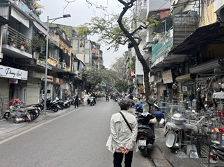 42) P. Lương Văn Can, Hanoi, Vietnam, February 14, 2025 - With our tasks (and hunger) dealt with it was time to decide what our sightseeing would be for the second half of the day. Back in 1889 the French built a massive building in which they tried to consolidate the traditional outdoor markets used by the Vietnamese in Hanoi. This old building, renovated and repaired over the past 136 years is now the Đồng Xuân Market. It was a decent walk to the north so we figured out a route on a new street (for us) and started walking. During the Lý Dynasty, around 1000 AD, while the Chinese ruled Hanoi as a puppet state the 36 streets of the city at that time were assigned to different craft guilds. So all the ceramics/potters were on one street and the paper makers on another, etc. To this day, over a thousand years later, there are still clusters of similar business along various streets in the Old Quarter. Well, our trek north put us on one such street and for about four blocks we were completely surrounded by metal working shops. Every thing metal you can think of was spilling out of tiny garage sized shops and the sidewalks were filled with shelving over-flowing with kitchen utensils and car parts and restaurant tools and construction components. It was amazing and now we hope to stumble on more streets like this over the next couple of days.