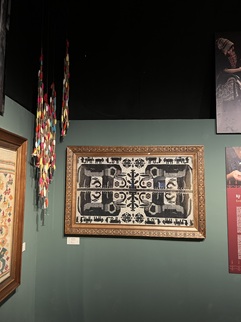 49) Bảo Tàng Mỹ Thuật Việt Nam (Vietnam National Fine Arts Museum), Hanoi, Vietnam, February 15, 2025 - We have have seen one or two pieces of silk painting and lacquer painting at other museums but in this museum there were multiple rooms dedicated to each. I can’t say it is necessarily unique to Vietnam but it felt that way since we saw so many different styles of each. The themes of the art made it very clear just how much the wars of Independence against first the Chinese, then the Japanese, then the French and finally the Americans have forged the national identity if the Vietnamese people. Most of the contemporary art in the museum references those wars in some way. A picture of a NVA or Vietcong soldier is presented with the same mythic messaging that a painting or sculpture of David & Goliath would represent in Western culture. I joked with Jonna that we could play "Where’s Waldo" with the artwork trying to find the soldiers in each one. The lacquer paintings were also quite interesting. I am very familiar with lacquer art where art is painted on something and then covered with clear or tinted lacquer as a protective cover but this art was using lacquer like oil paint with different pigments blended into the lacquer and then applied like paint. Many other techniques could then be applied like scraping or etching or even adding actual paint on top of the lacquer. The end result was lots of unique looking art. The silk painting was also beautiful since the paint put onto silk cloth is absorbed resulting in a diffuse or fuzzy look, kind of like water color painting. My favorite though was a bigger than life-size Buddhist statue of the Bodhisattva Avalokitesvara with carvings to represent the usual description of this Lord of Compassion having a thousand eyes to see all the pain in the world and a thousand hands to reach out to help. A beautiful representation of a much needed sentiment right now.