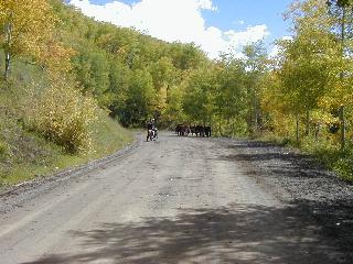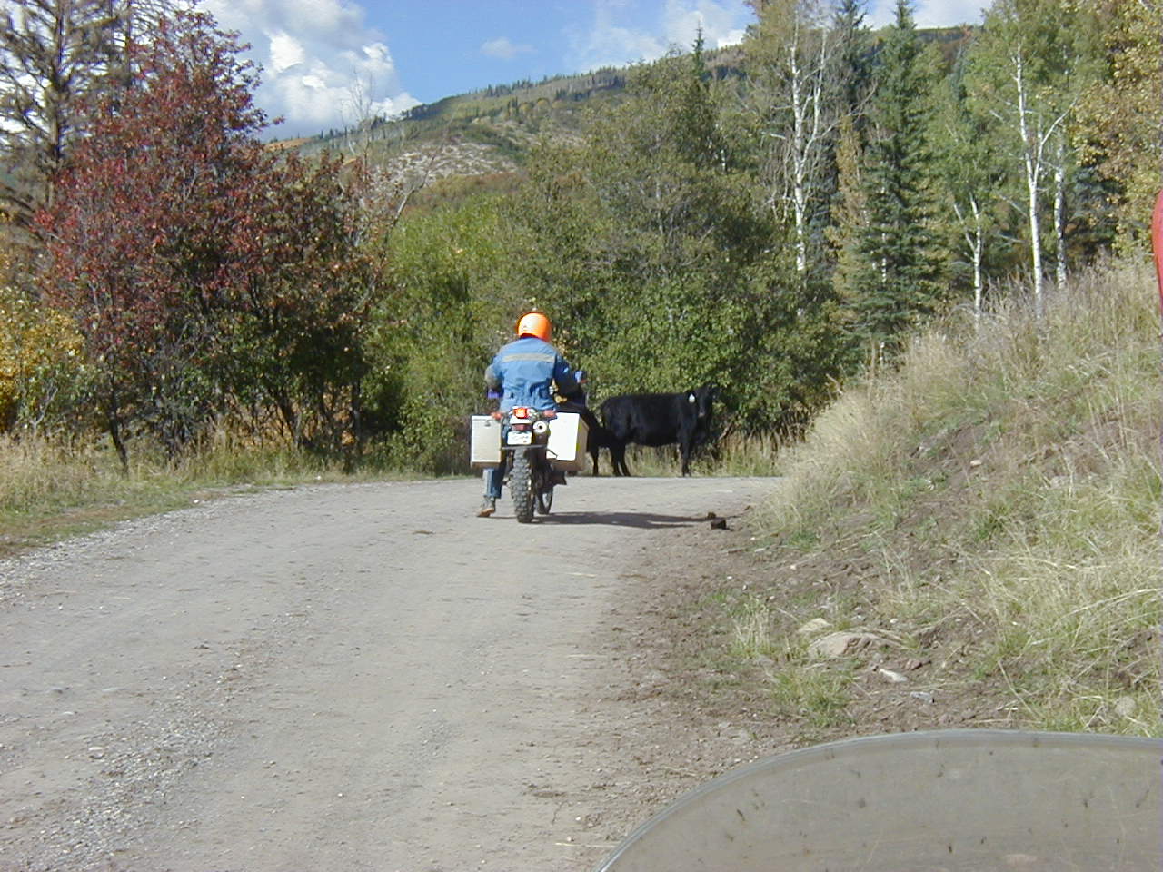 15) Tony staring down some cows on County Road 17 near the South Fork Campground, just south of Buford, CO:
