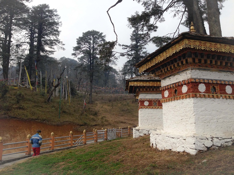 99) After leaving Thimphu we rode over Do Chu La pass. We stopped at the top to walk circumambulations around the 108 Druk Wangyal Chortens built there and to visit the nearby Druk Wangyal Lhakhang temple.