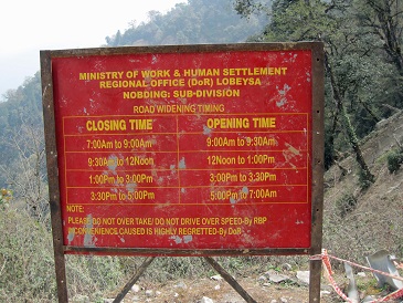 106) The road between Punakha and Trongs was even more crude in places. A single lane of crumbling pavement. Still, the route was again very beautiful winding through forested canyons.