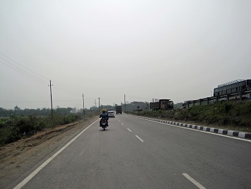 129) After a week of almost freaky peace and calm in Bhutan it was again a shock to be back in the craziness of India. Here we are on a two lane, one-way road with a big truck coming straight at us going the wrong way!