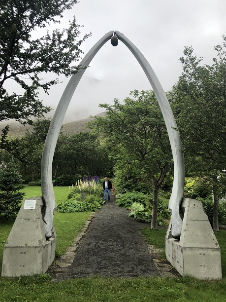 48) Skruður Botanical Gardens, Iceland, August 6, 2021 - Wow, we had a day that was jam-packed with sightseeing! In fact, we were so busy today that I re-named our rental car the "Fjord Explorer". Our first stop, amid the low lying early morning clouds and atmospheric ground fog was the remote Skruður Botanical gardens which are on a hillside overlooking Dýrafjörður. The modest enclosure is home to the oldest botanical gardens in Iceland (Est. 1909) and one of the highlights is a huge gate made from the jawbone of a whale. The flowers were lovely but the tranquility on this lonely fjord was the real take away.