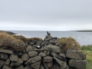 51) Látrabjarg bird cliffs, Westfjords, Iceland, August 6, 2021 - After lunch in Bíldudalur we crossed yet another pass (this one paved!) into Tálknafjörðurand then over even another pass to Patreksfjörður. From there we ended the day with two sights on the southern coast of the Westfjords. First was a visit to the western edge of Iceland at the Látrabjarg bird cliffs. 15 miles of 400+ foot high sheer cliffs covered with sea bird nests. The highlight was up close encounters with adorable little puffins but the sheer scale of the cliff walls and the vast expanse of the North Atlantic spreading out nearly all the way around the point. Once again the weather forecast had claimed rain but the clouds burned off early in the morning and by the time we got to Látrabjarg it was sun burn weather. Literally, perfect!