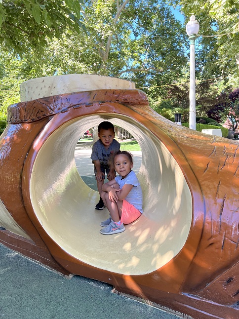 5) Both kids have amazing smiles and we got to enjoy those most of the time we were in Fairytale Town. The best was playing on a long set of balancing logs that had the twins giggling the most adorable laughs while we shook and bounced the logs and the kids tried to stay on rodeo-style. Amara showed off her amazing balance by walking the whole length of the longs while we were shaking them.